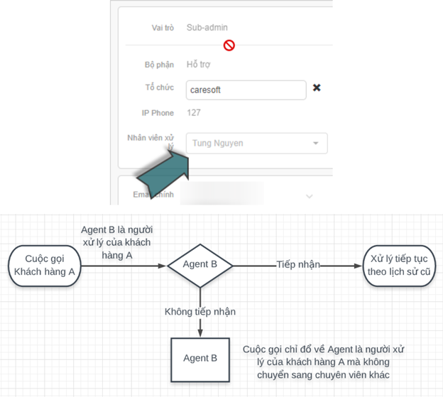 Định tuyến tự động cuộc gọi tới nhân viên xử lý: theo số gọi, xoay vòng và
