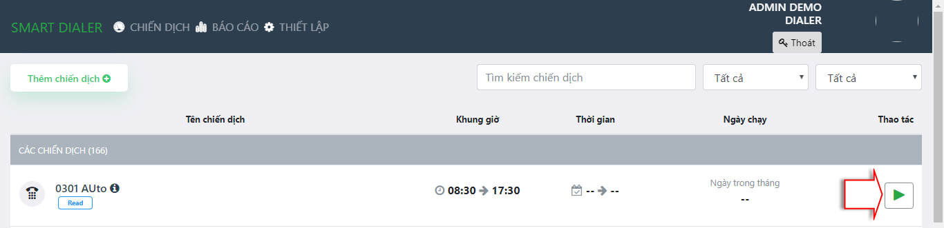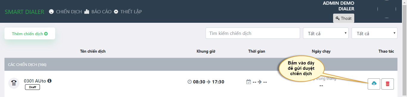 Sau khi chiến dịch Predictive Call được phê duyệt, Admin bấm