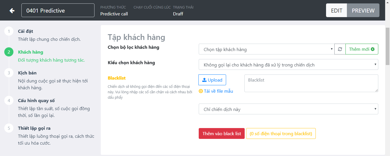 Bước 3: Thêm khách hàng vào chiến dịch Predictive Call