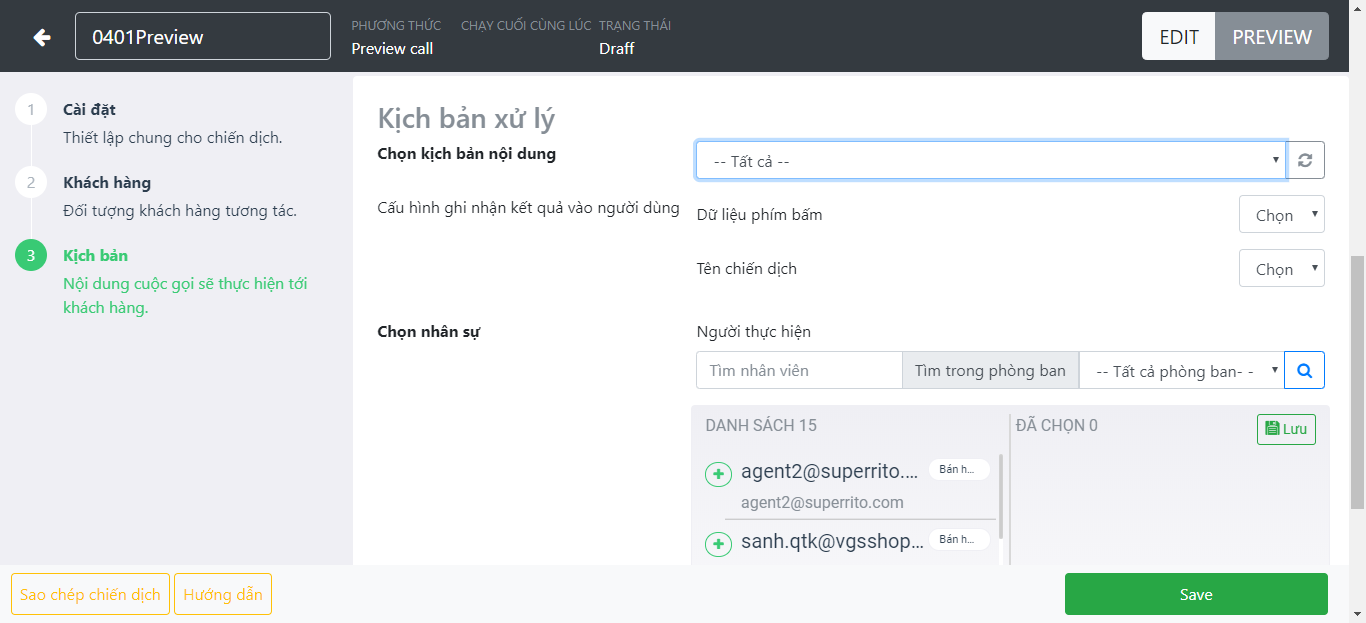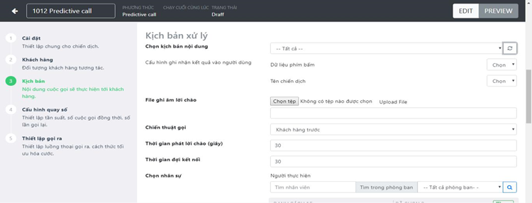 Smart dialer - Thiết lập thực hiên chiến dịch theo kịch bản